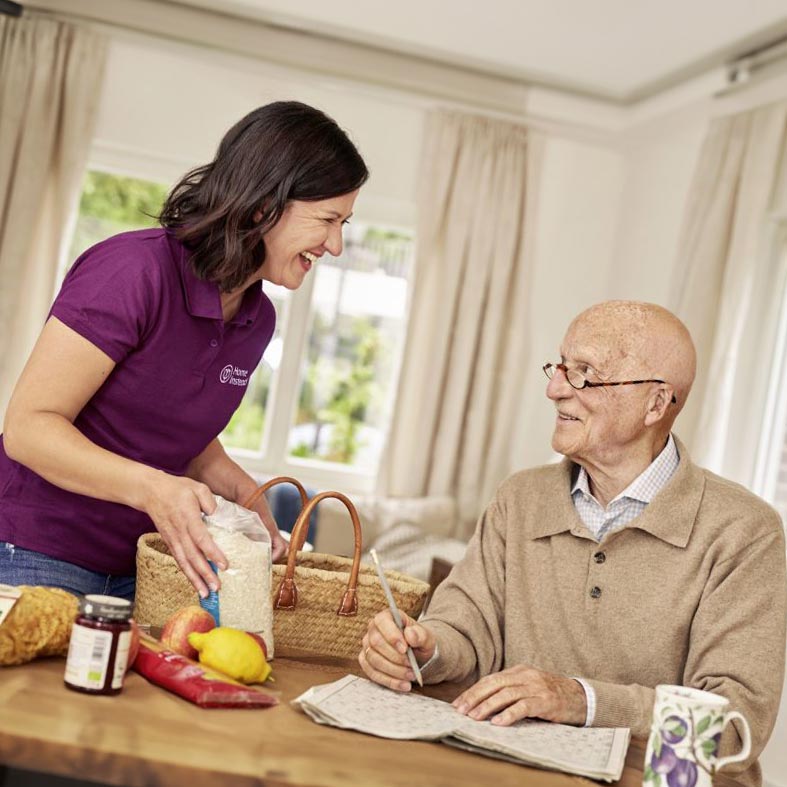 Gemeinsam schaffen wir das. Aufgaben, die Ihnen im Alltag schwerfallen, erledigen wir mit Ihnen zusammen. Zum Beispiel das Einkaufen, das Zubereiten der Mahlzeiten oder das Wäsche waschen. Wir sind an Ihrer Seite.